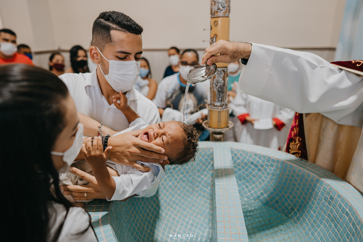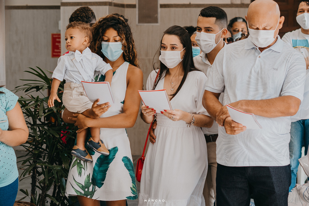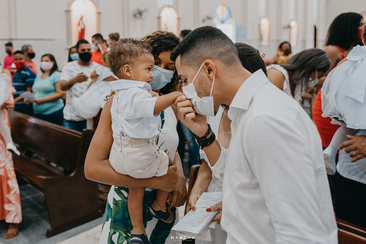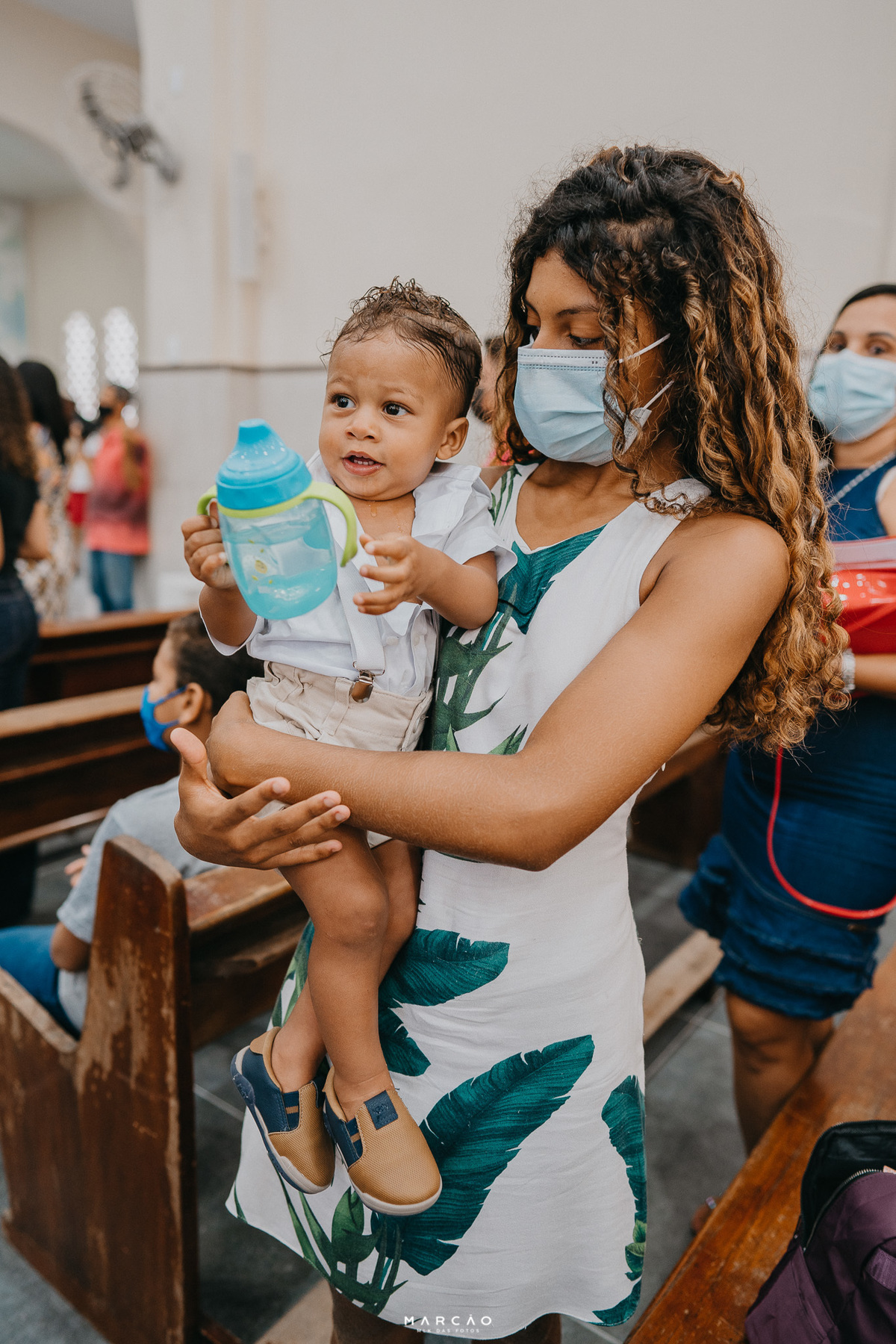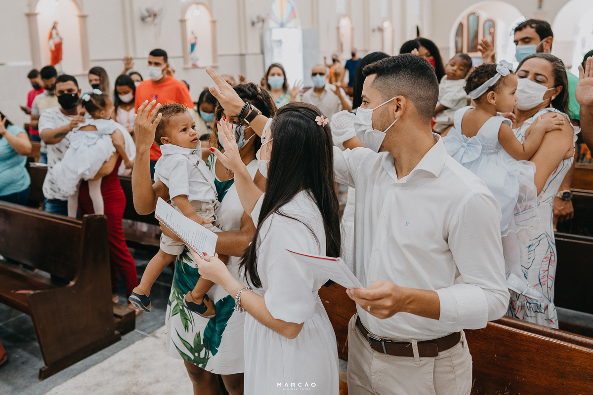 Caue é uma criança calma e super sorridente. Durante a cerimônia ele prestava atenção, interagia com o padre e principalmente com os familiares. Quando a criança está distraída durante a cerimonia é uma delícia para registrar esses momentos de amor e brincadeiras entre eles, sem duvidas é a parte que eu mais gostooooo. Foi perfeito, nesse dia ele até descobriu que o "fogo" queima ushuashuahs, tadinhoooooo 😂