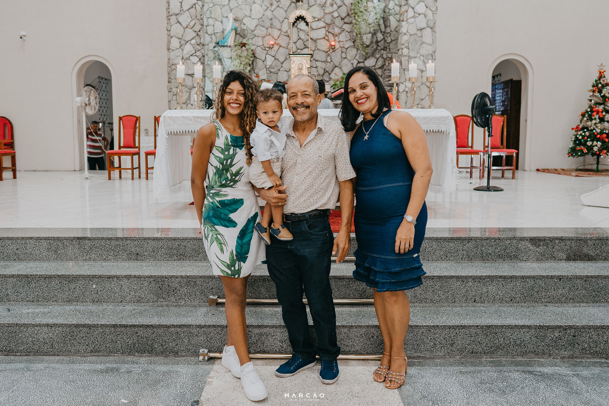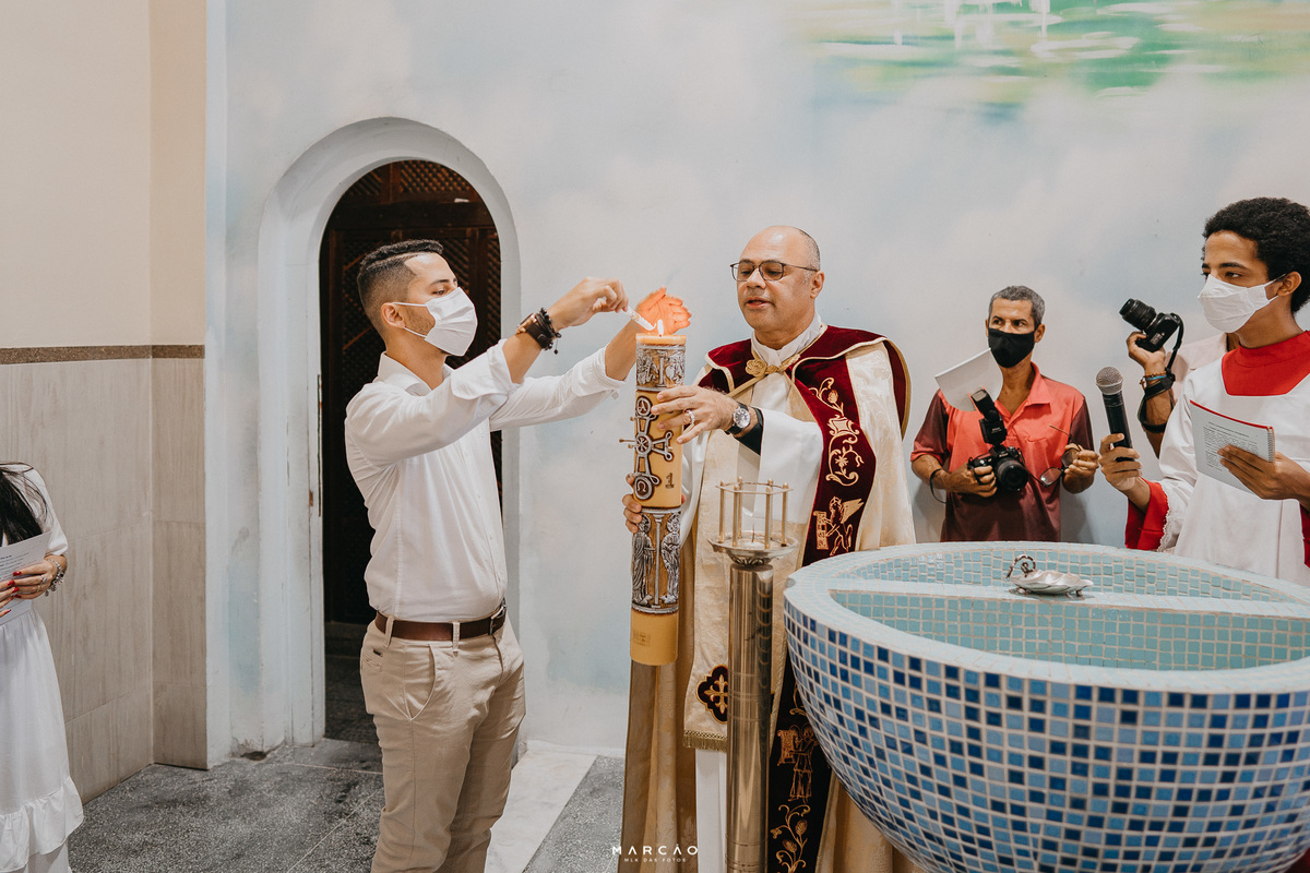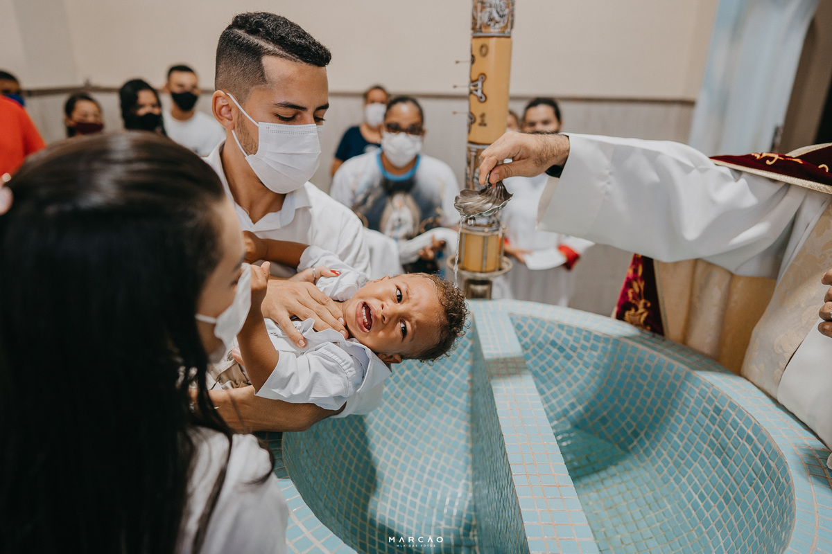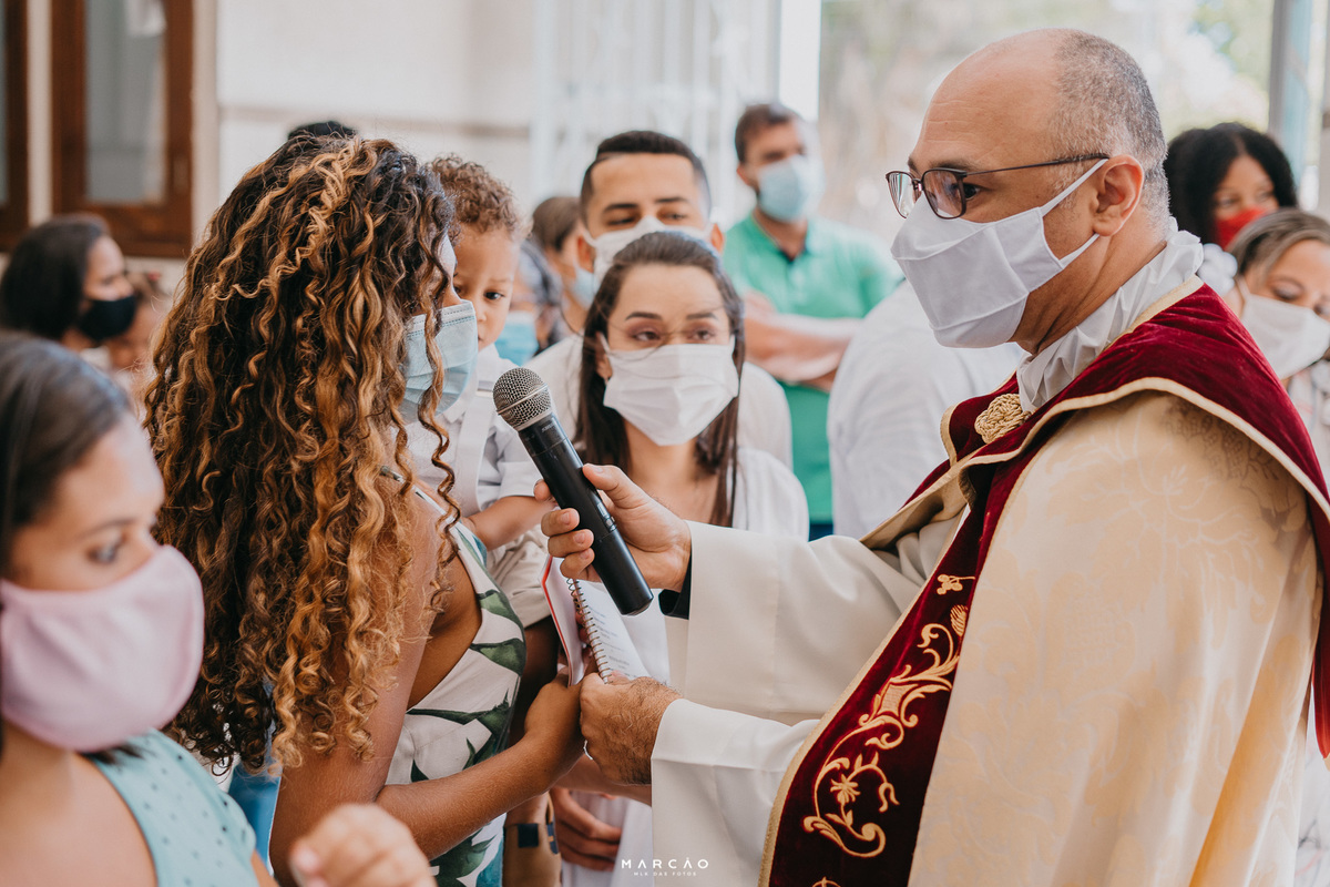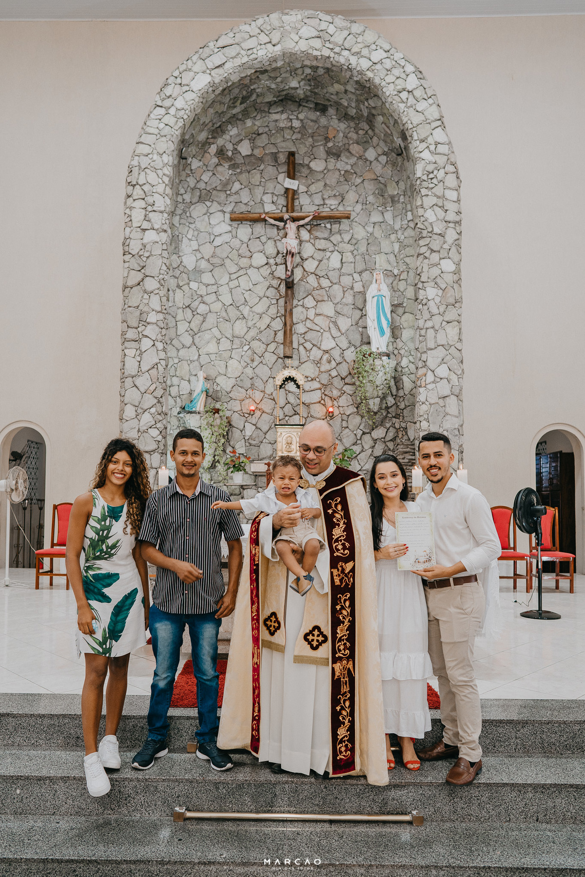 Caue é uma criança calma e super sorridente. Durante a cerimônia ele prestava atenção, interagia com o padre e principalmente com os familiares. Quando a criança está distraída durante a cerimonia é uma delícia para registrar esses momentos de amor e brincadeiras entre eles, sem duvidas é a parte que eu mais gostooooo. Foi perfeito, nesse dia ele até descobriu que o "fogo" queima ushuashuahs, tadinhoooooo 😂